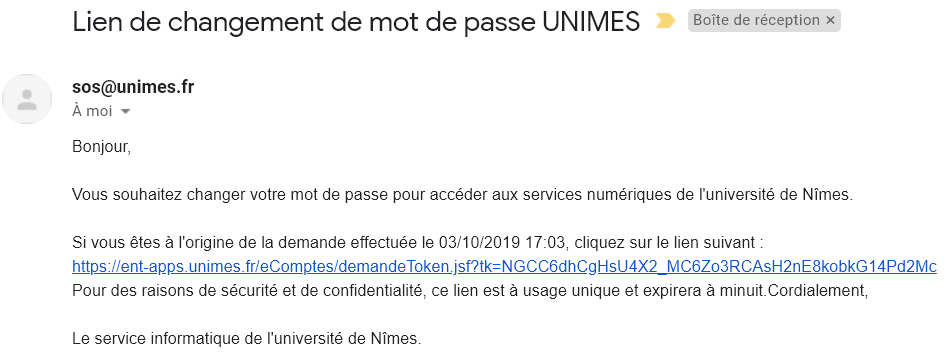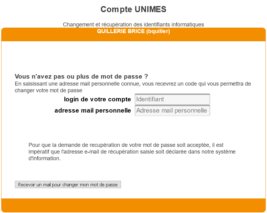 - Aller à cette url https://www.unimes.fr/perteMdp